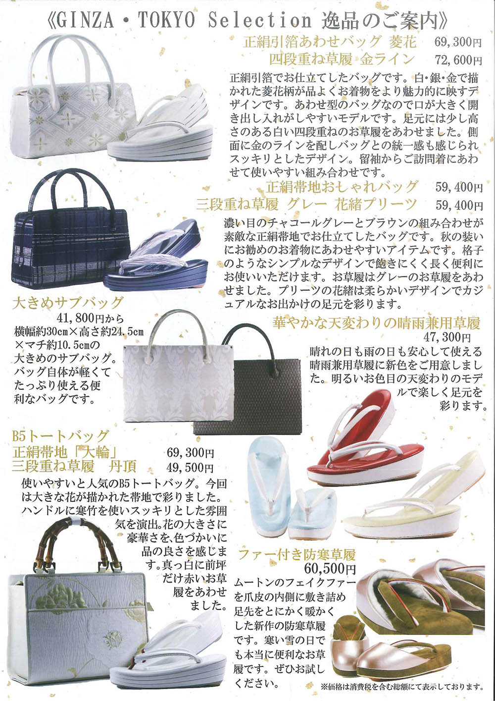 今回のオススメの商品は正絹帯地でお仕立てしたバッグと草履です。