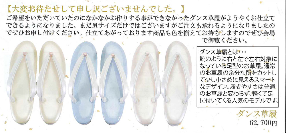 ダンス草履もまずはMサイズのみですがお作りできるようになりました。